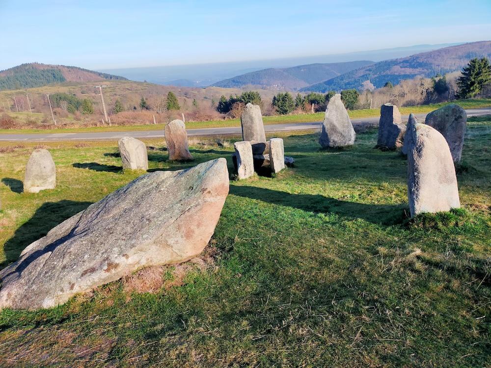 Circuit à Grendelbruch, en passant par le piton du Falkenstein et un énigmatique cercle de pierres, de 13 km et 300m de dénivelé.